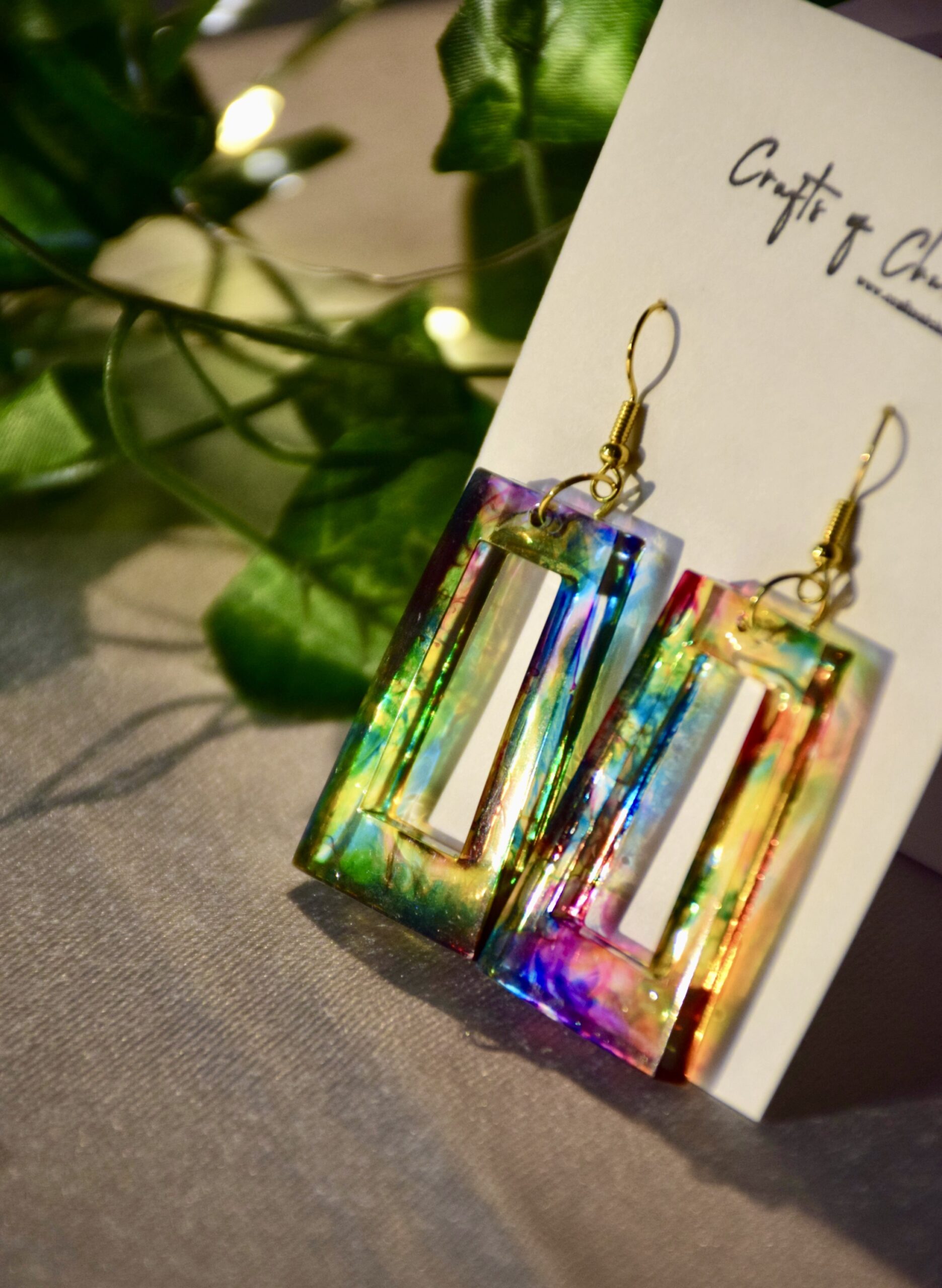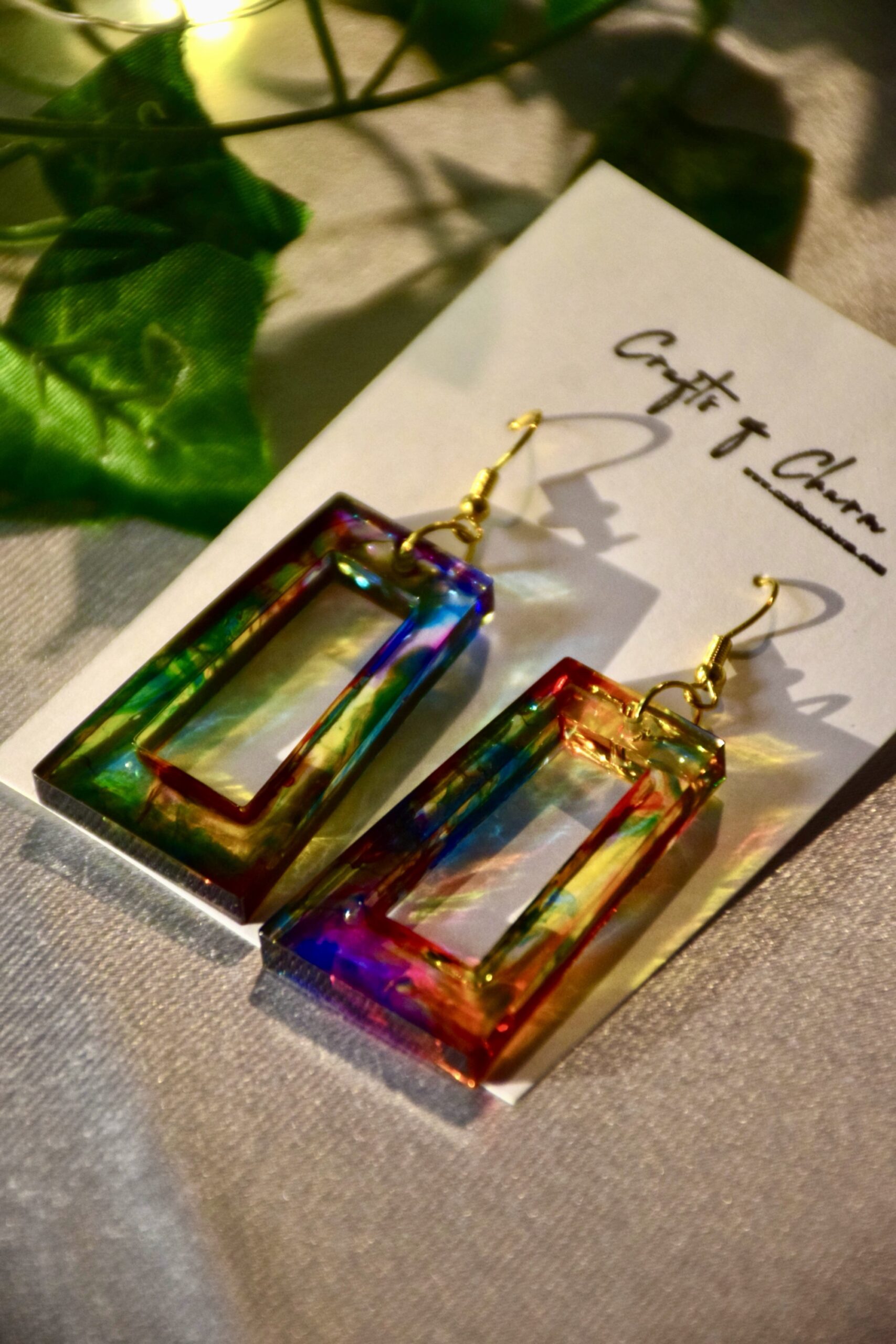 Colors: Ombre blend of deep emerald green to clear resin, with embedded gold foil flakes